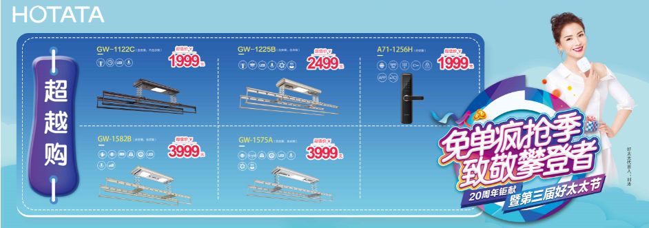 *瘋搶惠:“好太太晾衣機GW-1111A(不含安裝,不含衣架) + 科徠尼智能鎖A61-1256B(不含安裝)”巔峰套餐,特價僅需1999元/套。