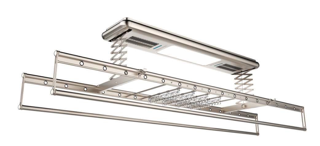 好太太智能晾衣機集照明、風干、烘干、消毒殺菌等功能為一體,擁有4核強勁風力,超大風量,在陰雨天氣下也能吹干。并且搭載著600W雙核PTC陶瓷發熱,高效烘干衣物,恒溫不傷衣物,并且吹干烘干后會自動關閉,節能省電,對于當代社會懶癌患者簡直是量身定做。再加之搭配新品被褥拍打護理儀,晾被再也不用人工進行拍打,科學健康更加簡便。