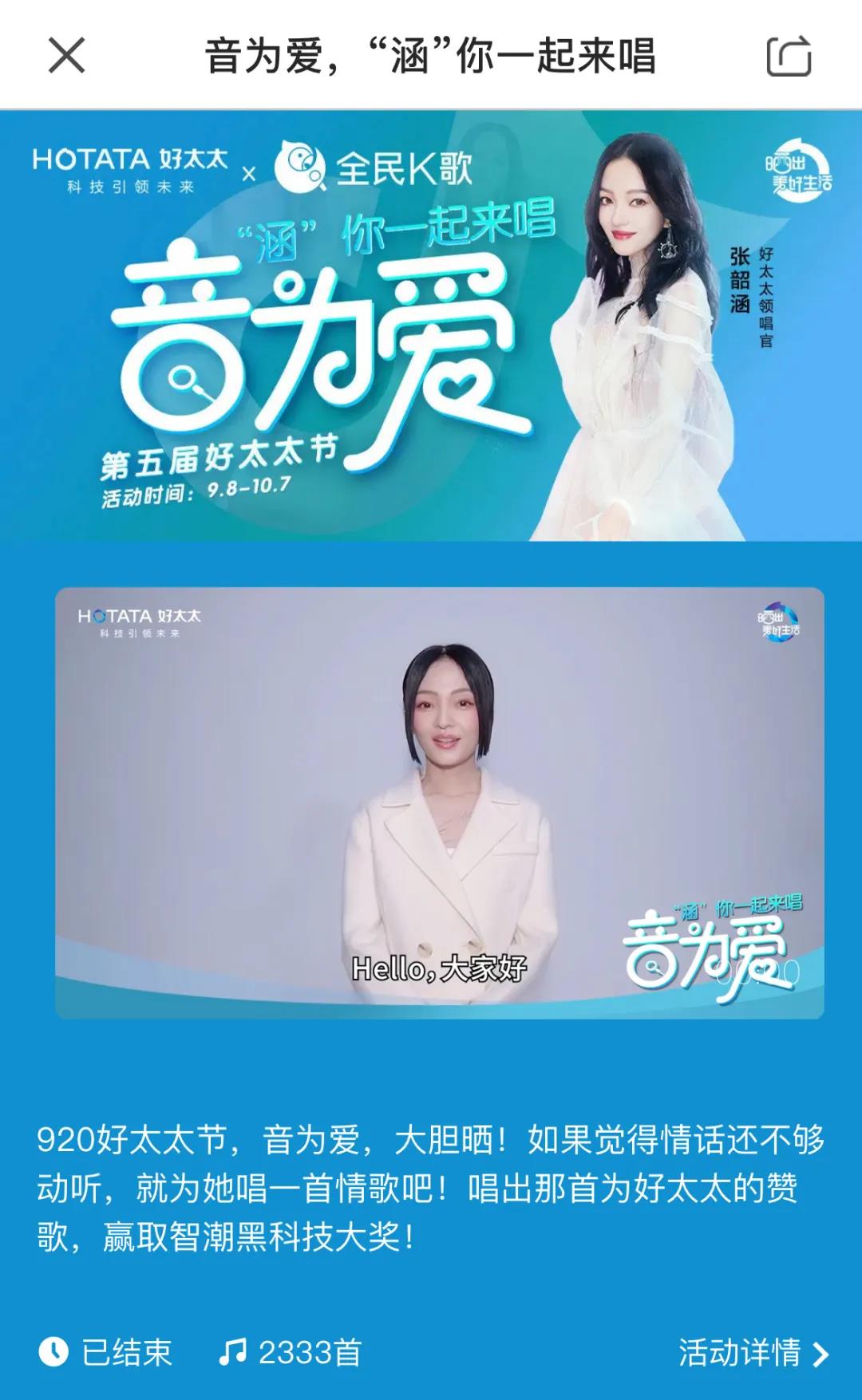 以張韶涵作為好太太領(lǐng)唱官,通過全民K歌平臺(tái)將歌聲傳遞給她