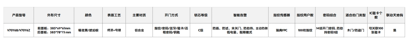 好太太智能鎖V70產(chǎn)品參數(shù):