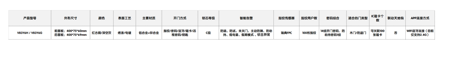 好太太智能鎖V83產(chǎn)品參數(shù):