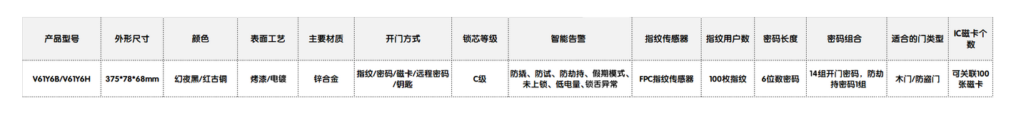 好太太智能鎖V61產(chǎn)品參數(shù):