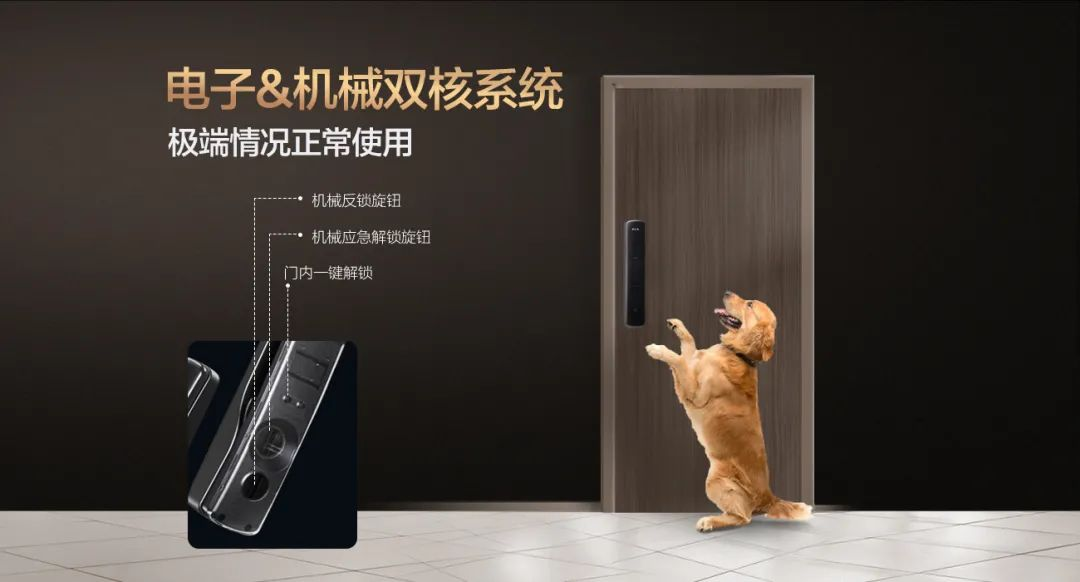 機(jī)械系統(tǒng)遇到水災(zāi)火災(zāi)等極端情況仍能正常使用,任一系統(tǒng)失效,另一系統(tǒng)仍能正常開關(guān)鎖