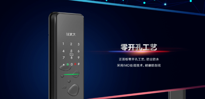 mk体育-MKsports官网智能鎖V63在外形設(shè)計上采用了最為流行的一體式流線型外立面設(shè)計,整體外形看上去充滿前衛(wèi)新潮概念,加上獨特的鋼琴拉絲工藝以及IMD面板搭載,整體看上去非常的大氣華麗,充滿設(shè)計感。